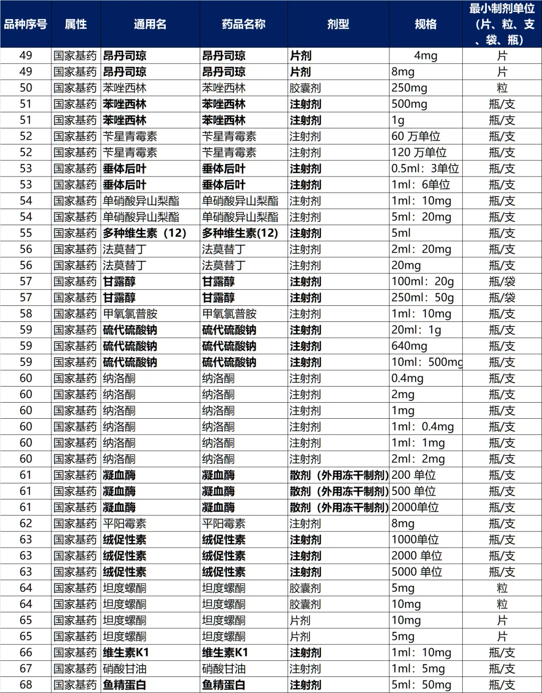 一共两大类产品:一类是基药,一类是国谈产品,但是规则不同。大体上看了一下,基药是20个,国谈产品是431个通用名。