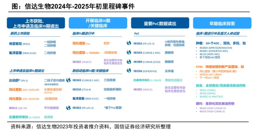 审视信达生物2024-2025初的潜在里程碑事件梳理,在历经前一波以玛仕度肽为首的上市NDA申请潮之后,更有潜力的肿瘤学新型分子将扛起未来成药、BD的大旗,不得不说,有点东西。