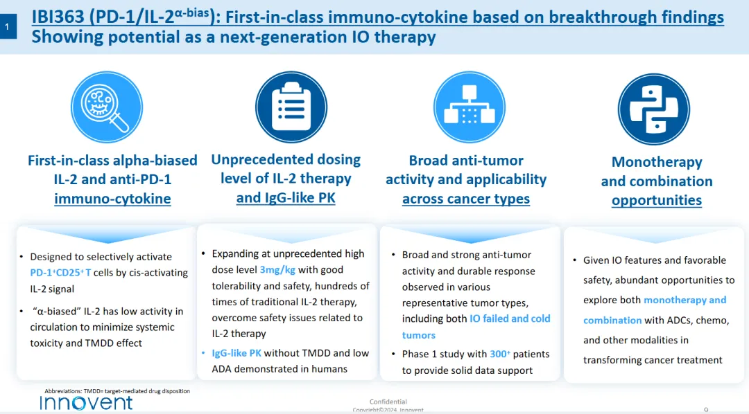 2)IBI-363同时对IL-2分子进行了工程化设计,保留了对IL-2α偏向性及降低了对IL-2β和IL-2γ链的亲和力,不仅有望克服与IL-2治疗相关的安全问题、大大提升了药物的治疗窗口,同时还能较大程度发挥药物激活肿瘤特异性CD8T细胞的潜力。