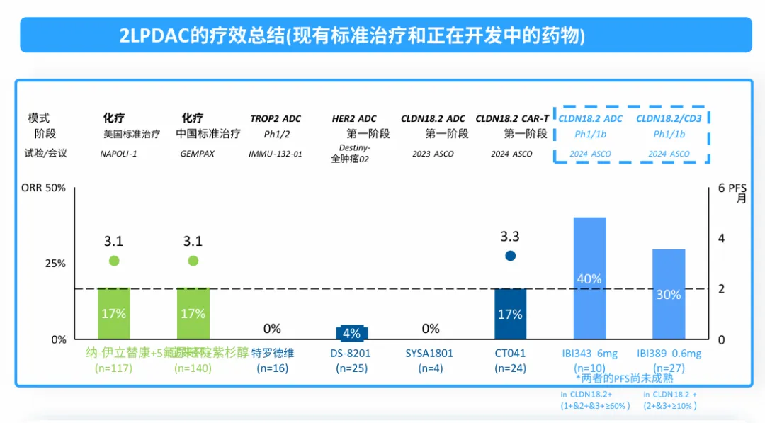 单单从胰腺癌的治疗角度看,该疾病领域二线标准治疗的化疗药物仅有6%-16%的有效率,PFS为2-3个月。目前,即便是ADC及其他药物的研究数据对胰腺癌疗效均非常有限;从IBI-343、IBI-389目前展现出的初步数据,至少这两款药物未来在CLDN18.2中高表达胰腺癌治疗上有着非常不错的成药潜力,更不用说CLDN18.2中高表达的胃癌。
