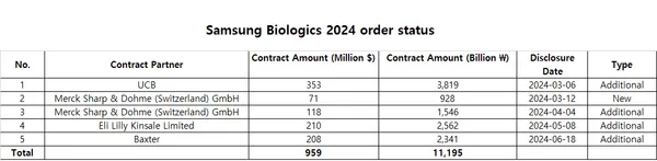 2024年6月18日,三星生物宣布与Baxter Healthcare签订了最新的CDMO合同,合同总金额为2.08亿美元(按照2017年7月21日汇率,USD/KRW 1124.9计算),三星生物也同时表示,Baxter便是7年前的神秘大佬,至此双方的总合作金额增加到了2.23亿美元。