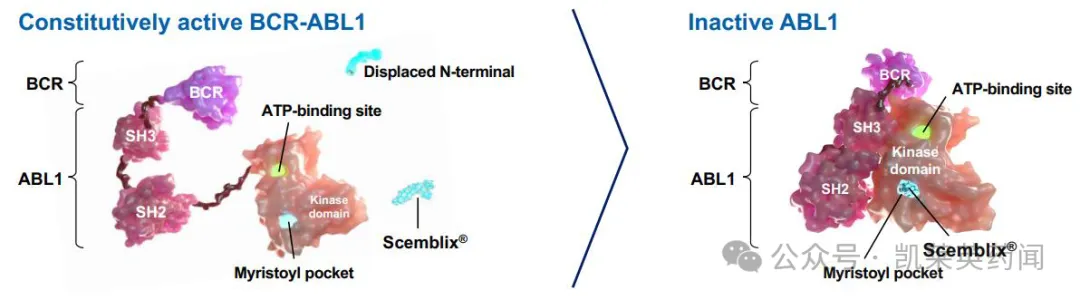 2021年10月,FDA加速批准asciminib(商品名Scemblix)用于治疗既往接受过两种以上的TKI治疗的Ph+CML-CP成年患者,并完全批准用于治疗携带T315I突变的Ph+ CML-CP成年患者。