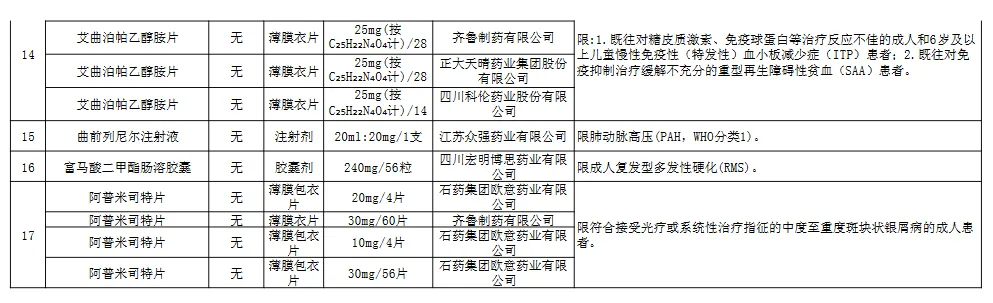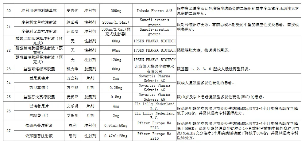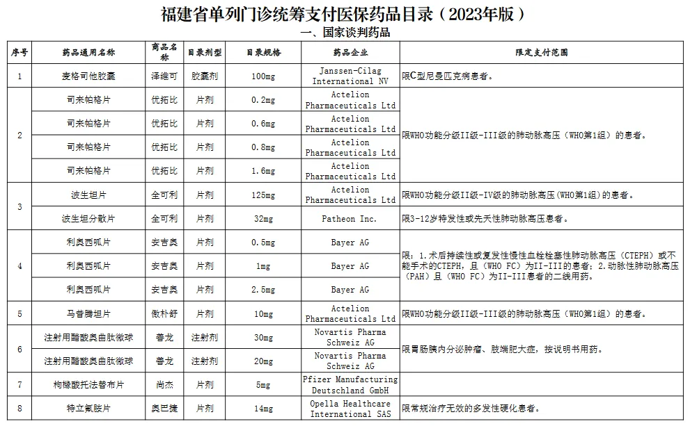 附:福建省单列门诊统筹支付医保药品目录(2023年版)