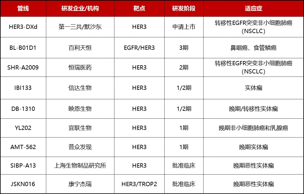 ▲ HER3 ADC获批临床的代表管线 |来源:医麦客