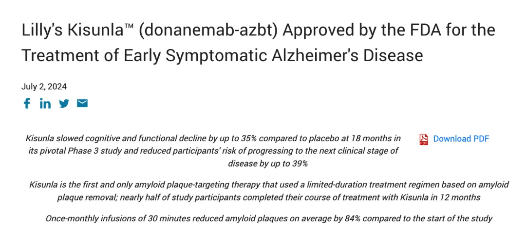 不过,III 期临床 TRAILBLAZER-ALZ 2 研究成功给礼来一针强心剂。基于此,23 年 Q2 礼来再次向 FDA 提交了 Donanemab 的新药上市申请(BLA),近日终于取得最终胜利。