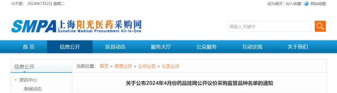 近日,上海市医药集中招标采购事务管理所发布《关于公布2024年4月份药品挂网公开议价采购监管品种名单的通知》,按照此前“四同药品”价格治理等等相关文件的要求,上海对4月挂网公开议价未通过公允性评估、重点监控药品幅度靠前且有一定采购金额的品种进行了公布。