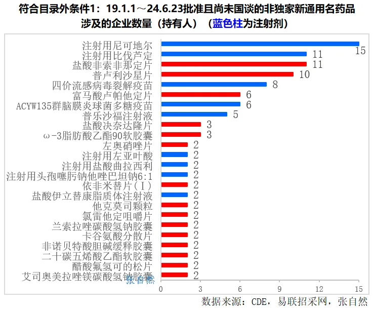 符合目录外条件1的24个非独家品种,共涉及130个批文、96家企业。