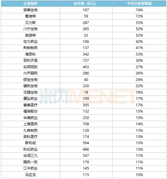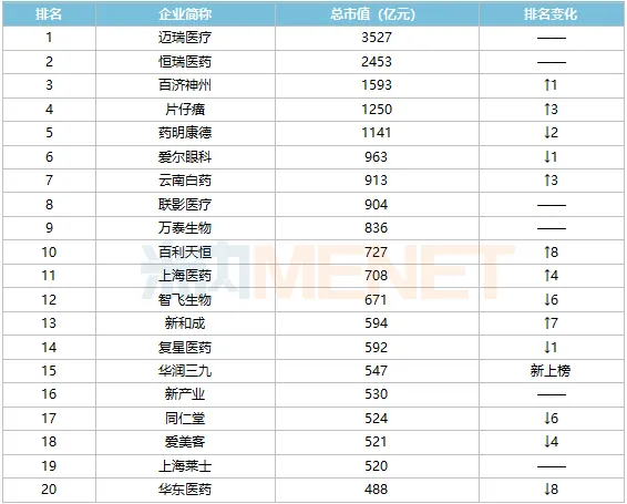 千亿市值医药股仅剩5只,TOP20大洗牌
