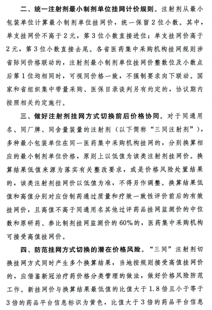 为纵深推进挂网药品价格治理,推动医药企业挂网行为更加规范,注射剂价格更加透明,减少因包装数量、转换比差异形成的不公平价格问题,现就规范注射剂挂网形式通知如下: