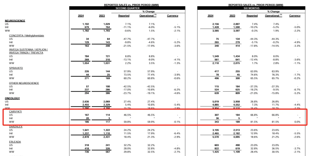 2024年7月17日,强生发布2024年第二季度(2024Q2)财报,报告显示与传奇生物合作的BCMA CAR-T疗法Carvykti的二季度销售额达1.86亿美元,上半年合计销售额3.43亿美元。