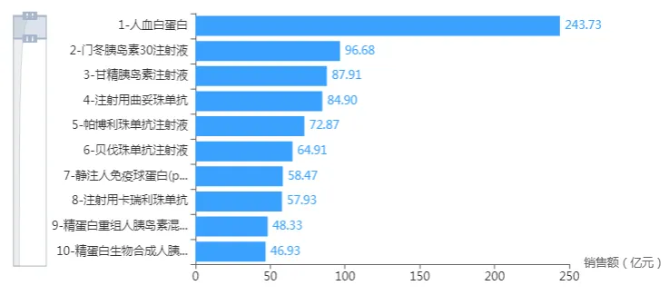 图2 2016年—2023年,零售「注射剂」销售额TOP10 图片来源:药智数据