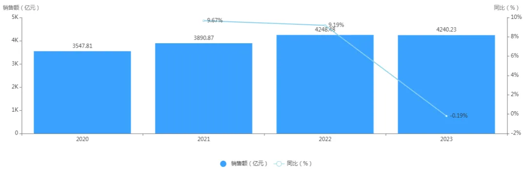 图6 2020年—2023年,药品零售端年销售额 图片来源:药智数据
