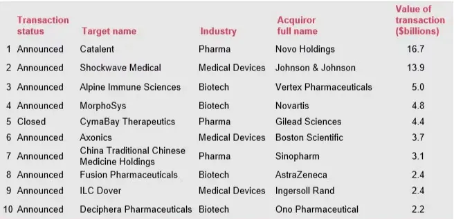 市场环境发生了变化、竞争越发激烈,诸多前沿医药新技术的驱动,是医药行业掀起并购潮的主要原因。
