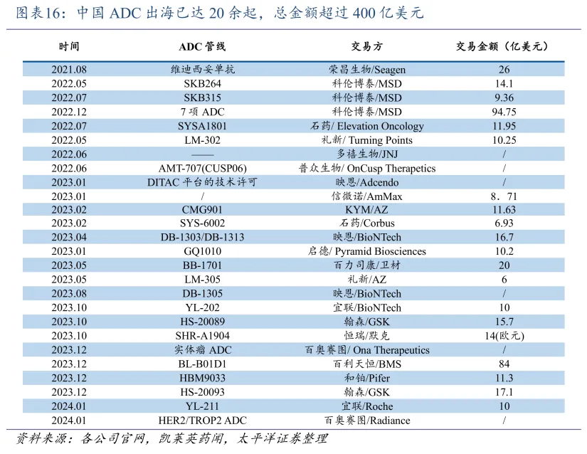 例如,站在技术前沿潮头的“魔法子弹”抗体偶联药物(ADC),就是这几年MNC巨头重点引进或并购的领域。其中,辉瑞豪掷430亿美元收购Seagen、艾伯维以101亿美元收购ImmunoGen、默沙东以最高220亿美元引进第一三共3款ADC新药便是最好例证。