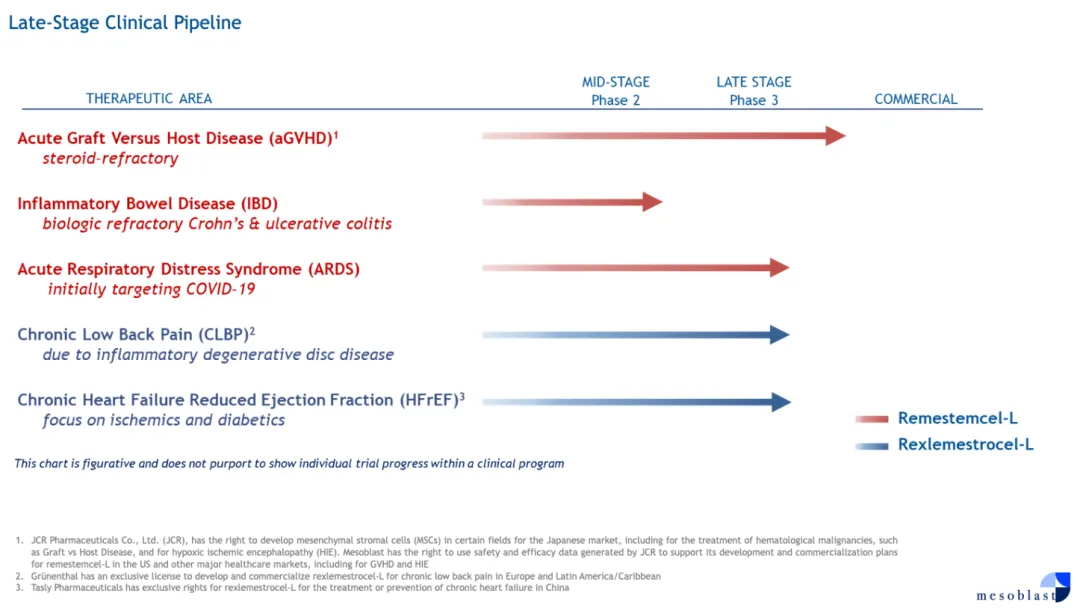 ▲Mesoblast的后期临床研发管线(图片来源:Mesoblast官网)