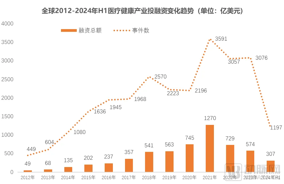 一、 2012年-2024年H1全球医疗健康产业融资变化趋势