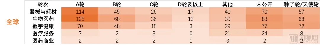 2024年H1全球医疗健康产业融资轮次分布 数据来源:动脉橙数据库