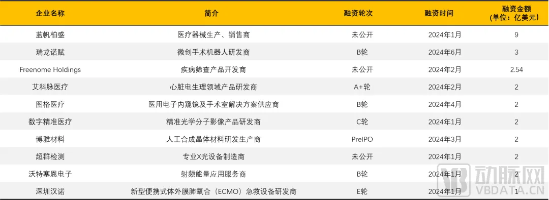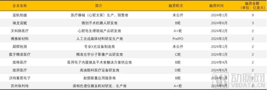 2024年国H1内医疗器械融资TOP10 数据来源:动脉橙数据库