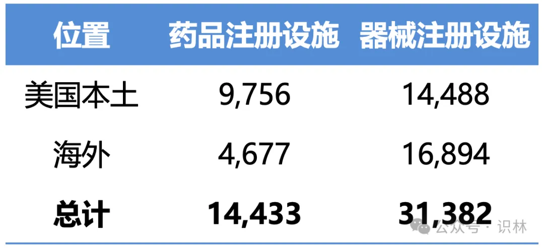 表1 美国本土和海外药品和器械注册厂房设施数量