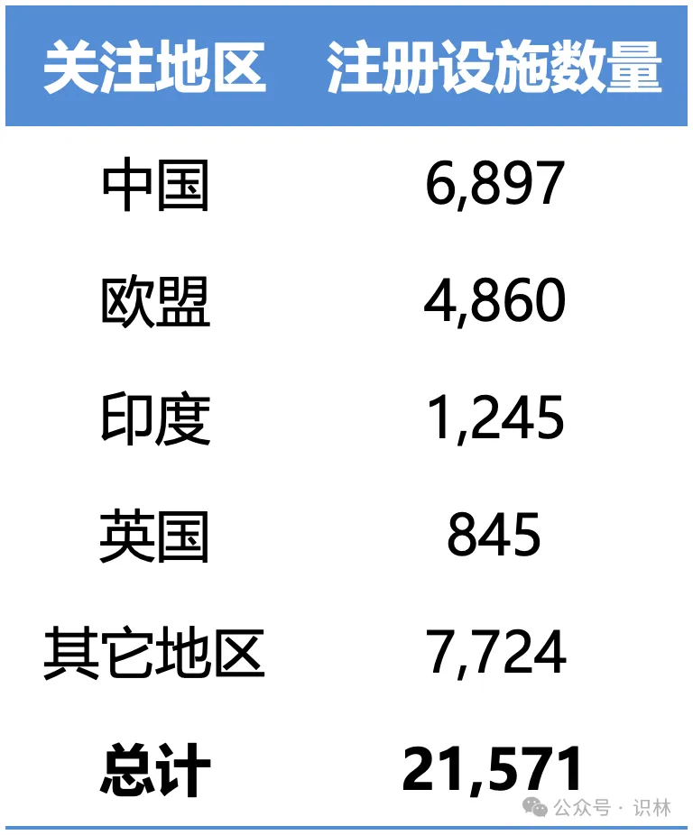 表2 关注地区注册厂房设施数量(编者注:这里的厂房设施包括药品和器械设施)