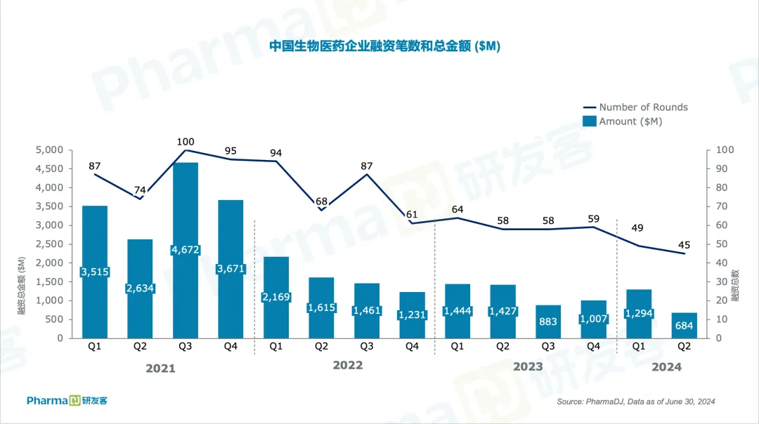 · 94家中国药企在2024 H1获得19.8亿美元融资,相比去年下跌31%。