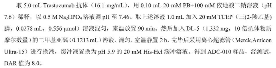 偶联方式上,以HER2曲妥珠抗体为例,赖氨酸偶联主要在依地酸二钠溶液中反应,半胱氨酸偶联则采用传统的TCEP还原后再反应。两种在工艺上没有先后顺序,有先进行赖氨酸偶联的,也有先进行半胱氨酸偶联的,整体偶联效果没有区别。