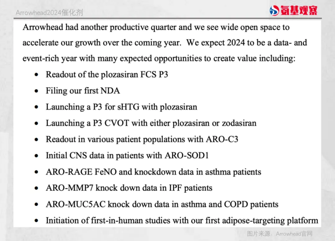在逆势中,Arrowhead依旧不愿放弃自己的野心。毕竟,公司的技术没有问题。在2023年财报中,其更是喊出了“20 in 25”的战略,要继续推进越来越多的临床项目;与此同时,公司还要扩建试验室,建立生产基地。