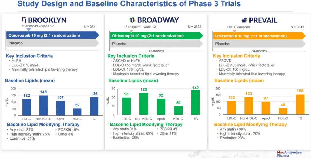 鉴于研究观察到的LDL-C降低能力和安全性,NAP选择10mg剂量的Obicetrapib开展3期临床研究,并设计了专门的心血管获益研究(CVOT),旨在避免以前CETP抑制剂研究方案的缺点,并期望最终能够满足那些尽管接受目前最佳降脂治疗但LDL-C水平仍然升高的ASCVD(动脉粥样硬化性心血管疾病)和/或HeFH(家族性高胆固醇血症)患者的未满足治疗需求。