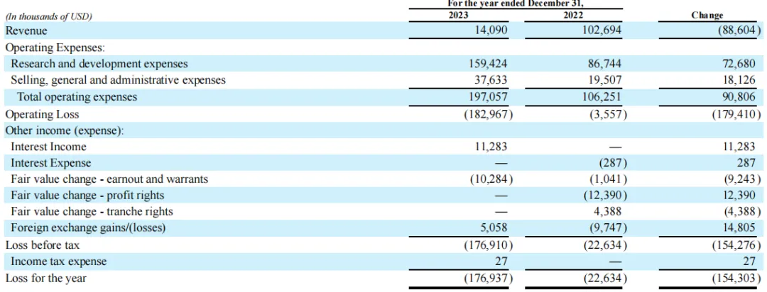 2023全年,NAP公司总收入为1410万美元,而上一年同期为1.027亿美元,这一下降主要是由于2022年收到了美纳里尼的预付款;2023年R&D费用为1.594亿美元,上一年同期为8670万美元,这一增长主要与正在进行的3期临床试验有关;SG&A费用为3760万美元,上一年同期为1950万美元,主要是因为公司人员增长。2023全年净亏损为1.769亿美元,或每股亏损2.15美元。