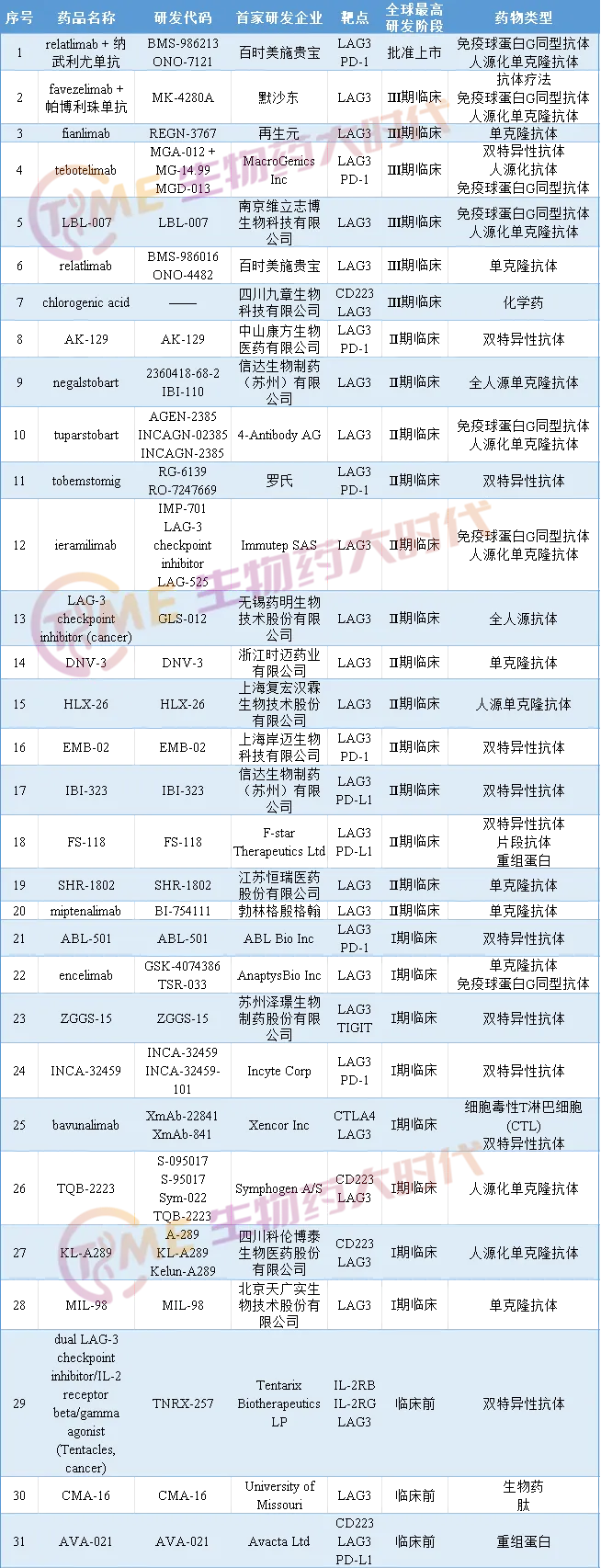 Incyte公司研发主管Pablo Cagnoni表示研发管线的变化是 “基于现有数据、不断变化的治疗格局和内部研发管线”的演变。终止LAG-3项目的决定是基于 “竞争态势”,公司将决定在合适的时间披露部分项目的数据。主要原因是该公司管线进展已远远落后于竞争对手: