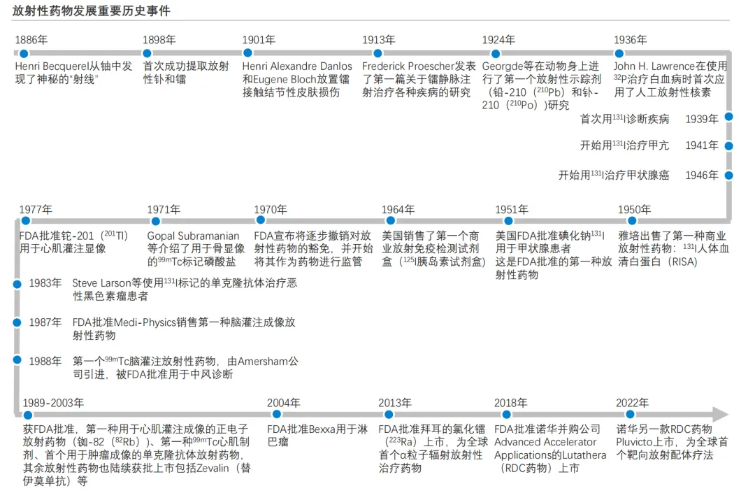 4.放射性核素偶联药物(RDC):RDC是核药靶向治疗领域中最具潜力的发展方向之一,诺华、拜耳、强生、BMS等跨国药企正在积极布局和研发RDC产品 。