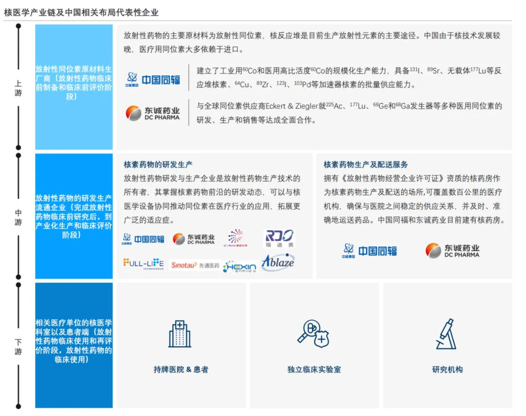 5.中国同辐和东诚药业:中国同辐拥有17家核药房,东诚药业有14家核药房,它们是国内核药市场的主要参与者,正在加速布局以满足临床需求 。