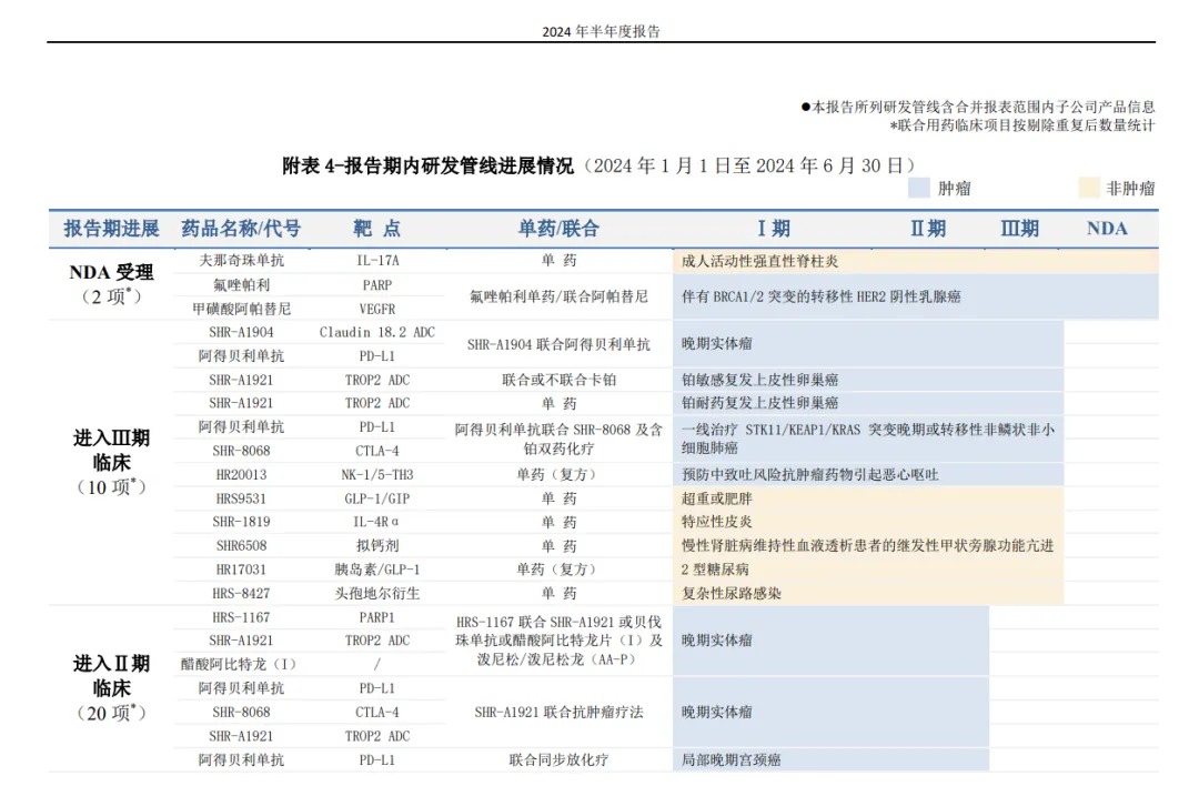 研发方面,恒瑞医药持续加大创新力度,维持较高的研发投入,2024年上半年累计研发投入38.60亿元,同比增长26.23%,至今累计研发投入超400亿元。同时公司持续优化组织结构,促进运营提效,经报告数据测算,销售费率下降至28.96%,若在营业收入中剔除对外许可收入来计算,销售费率下降至低于32%的水平。报告期内,从研发管线布局来看,恒瑞医药取得创新药临床批件57个,10项临床推进至Ⅲ期,20项临床推进至Ⅱ期,19项临床推进至Ⅰ期,有90多个自主创新产品正在临床开发,300余项临床试验在国内外开展。今年上半年3项创新成果获批上市,4项突破性疗法认定。其中,创新药富马酸泰吉利定获批上市,目前恒瑞已上市1类创新药增至16款。