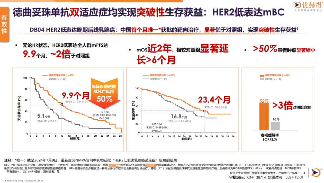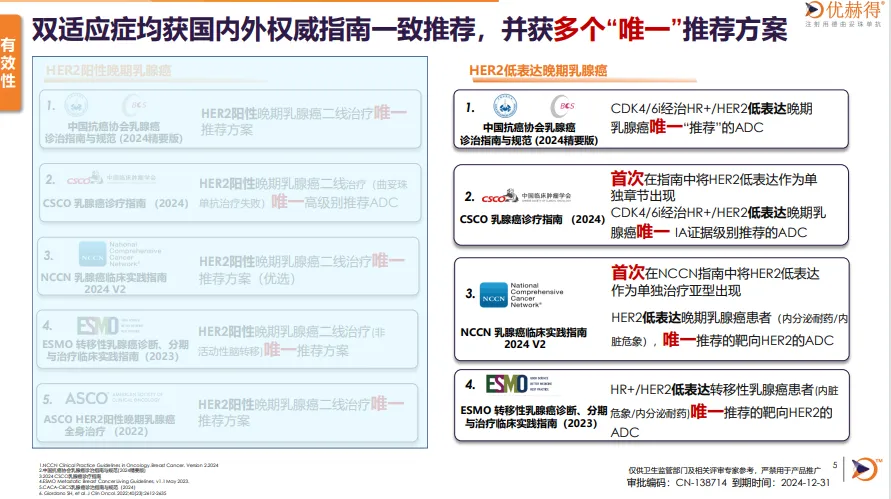 2)在优秀数据的加持下,强调产品在HER2低表达乳腺癌治疗的意义,名副其实的唯一和填补空白