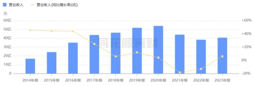 持续的并购也让亿帆医药的业绩得到迅速提升,2014年-2020年,亿帆医药的营业收入从16.85亿元增长至54亿元,净利润也从2.38亿元增长至最高13.05亿元。