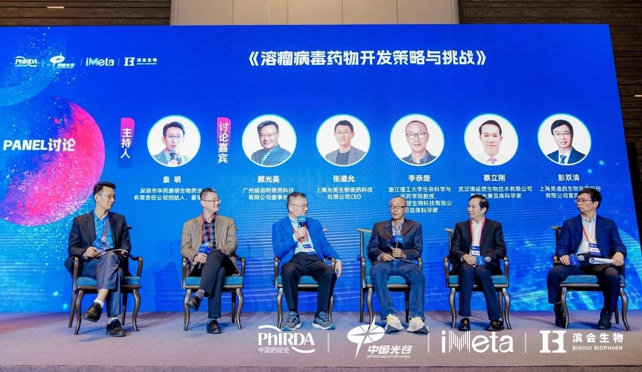 2024年10月26-27日,第二届溶瘤病毒创新与合作大会在武汉召开。大会设置了“溶瘤病毒药物开发策略与挑战”PANEL讨论环节,深圳市华药康明生物药业有限责任公司创始人、董事长袁明担任主持人,与广州威溶特医药科技有限公司董事长颜光美、上海允英生物医药科技有限公司CEO张道允、浙江理工大学生命科学与医药学院教授&杭州功楚生物科技有限公司首席科学家李恭楚、武汉博威德生物技术有限公司董事长兼首席科学家蔡立刚、上海美迪西生物医药股份有限公司首席科学官彭双清等嘉宾同台,从技术层面和监管层面探讨了溶瘤病毒药物开发遇到的痛点和难点,寻求破局之道。