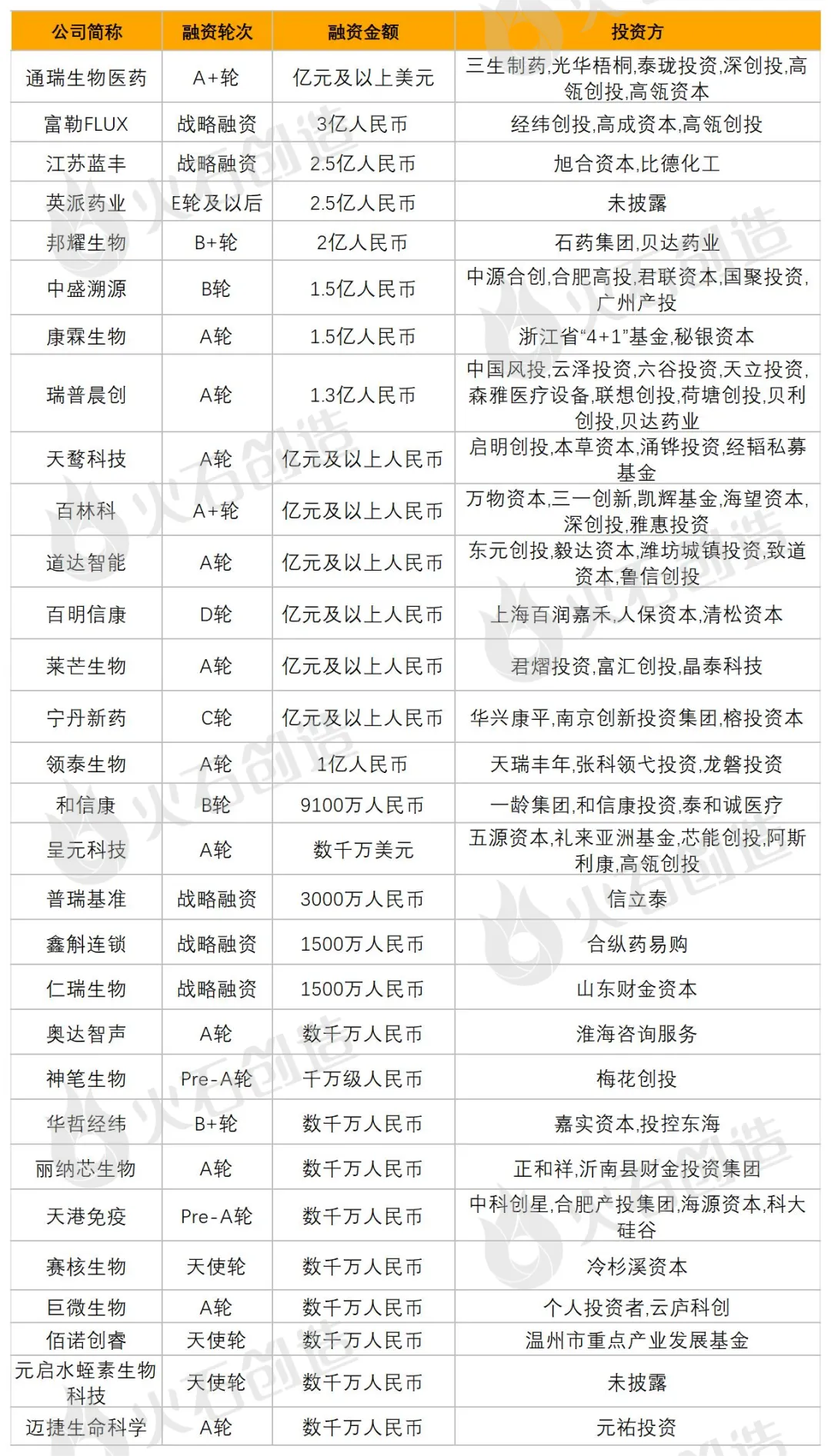 本月生物医药行业融资事件TOP30