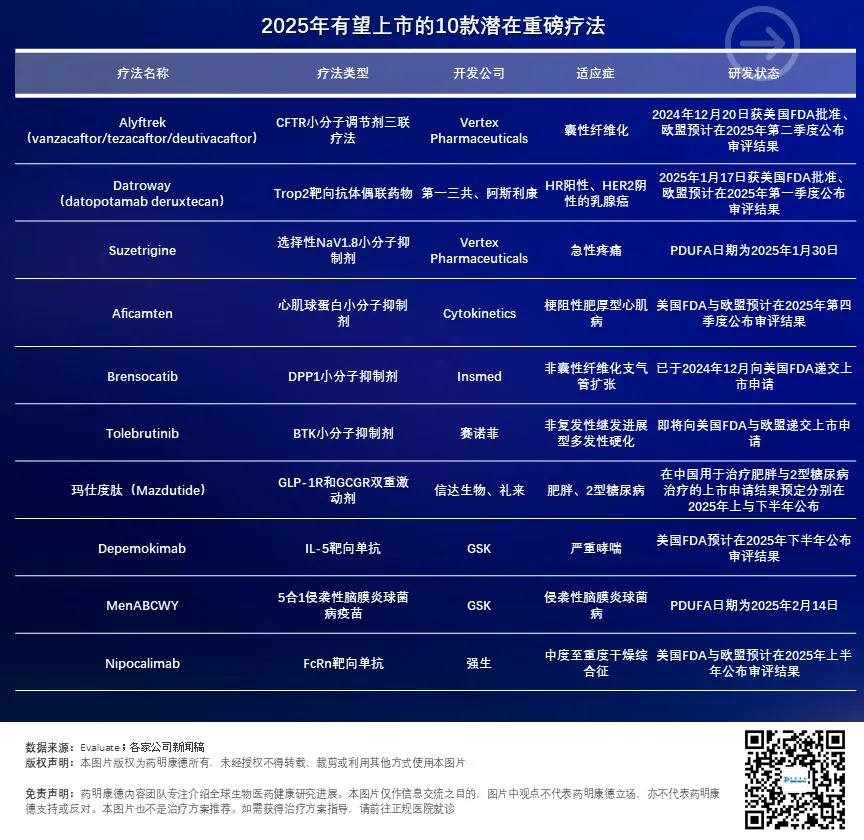 2025年有望上市的十款潜在重磅疗法