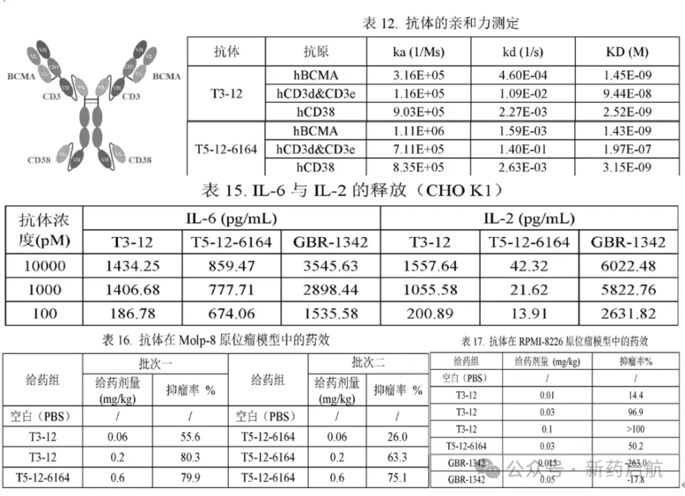 血液瘤方面,恒瑞造出了一个不错的三抗——SHR-9539:靶向BCMA/CD38/CD3,相关类型的双抗/三抗拆解详见文章《大佬下注,三抗开始发力》。从结构来看,恒瑞的设计是2:2:2对称设计,根据新药启航的拆解,采用了对称结构后重链不存在错配问题,Fc引入了L234A,L235A突变去除ADCC效应,笔者猜测是为了增强安全性。
