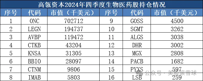 作为华人资本圈的顶级投资机构,高瓴资本的持仓一直是华人美股投资界的风向标,近日,高瓴资本2024年四季度持仓披露,依然以互联网与生物医药为主,通常情况下,投资人关注的焦点是高瓴资本在互联网领域,尤其是中概股方面的持仓情况,而忽略了高瓴资本是生物医药领域的资深玩家: