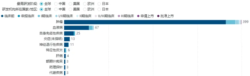全球PROTAC管线的TOP10适应症(来源:医药魔方NextPharma®数据库)