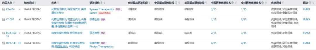 临床阶段的自免PROTAC分子(来源:医药魔方NextPharma®数据库)