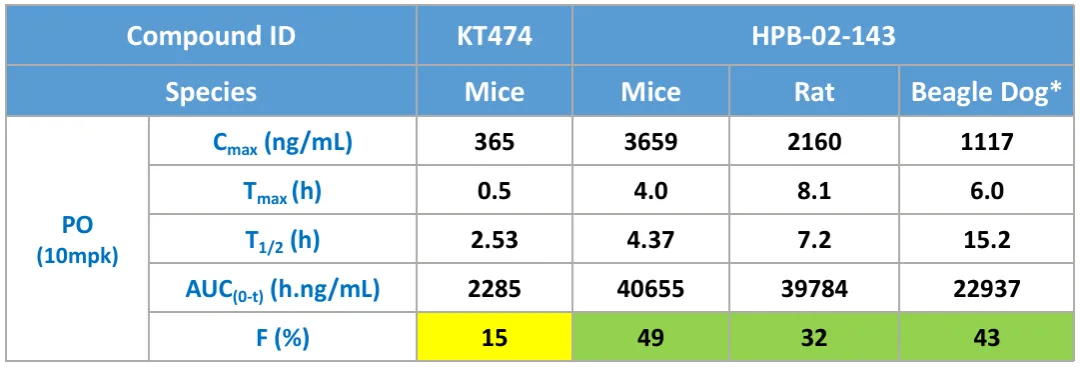 HPB-143与KT-474的药代动力学数据(来源:多域生物官网)