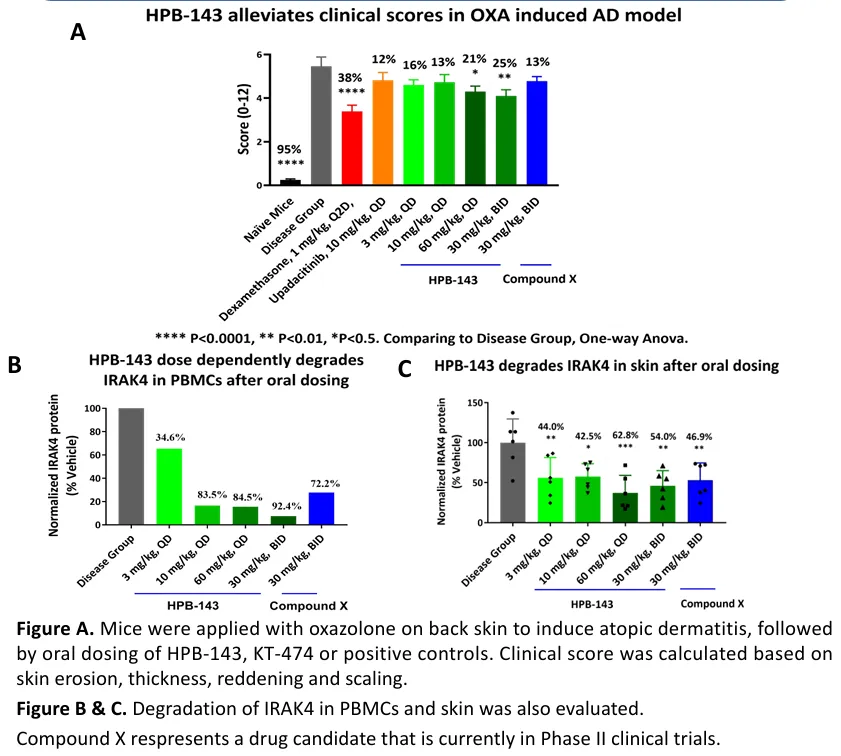 特应性皮炎模型中,HPB-143与KT-474的药效学数据(来源:多域生物官网)