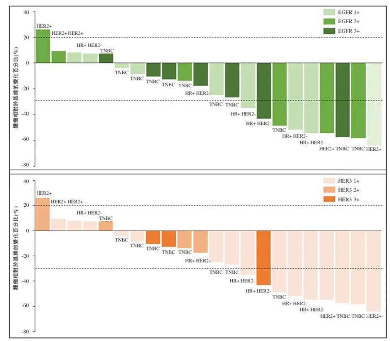 全球首创的EGFR/HER3双抗ADC药物BL-B01D1,最大的核心显然是其立项依据。首先EGFR和HER3在多种实体瘤中具有同步表达,具有协同性。EGFR和HER3在多种实体瘤中的表达