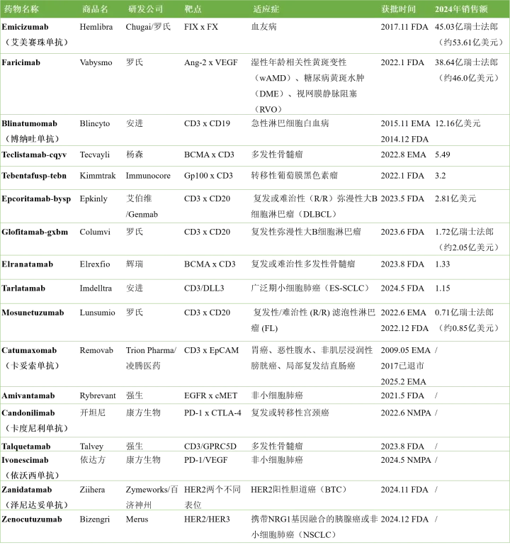 图1. 获批上市的双抗药物信息