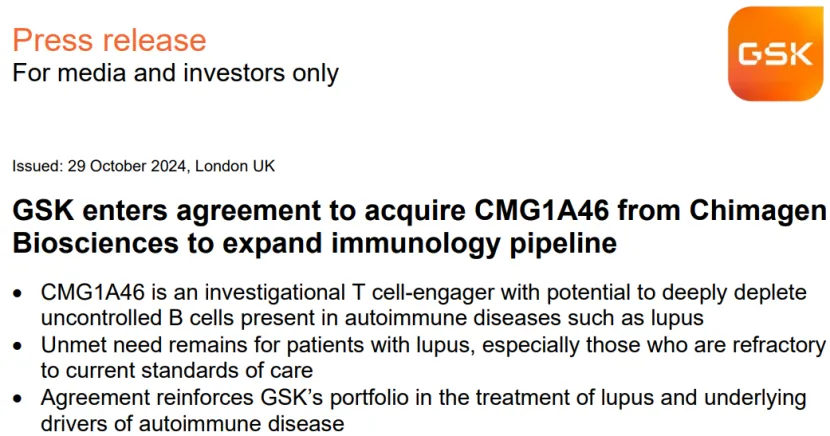 https://www.gsk.com/en-gb/media/press-releases/gsk-enters-agreement-to-acquire-cmg1a46-from-chimagen-biosciences/;