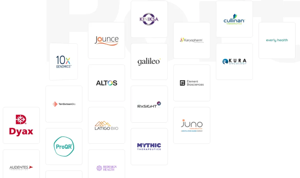 Foresite Capital至今累计投资超过120家公司,涉及医疗保健技术与服务、生命科学、药物研发领域,被投企业包括单细胞测序龙头10x Genomics、医疗健康保险公司Amerigroup(被安森保险/Anthem收购,Nasdaq:ANTM),以及药融圈此前梳理过的多家企业:Jazz Pharmaceuticals、Alumis、Avenzo Therapeutics、Candid Therapeutics、Cullinan Therapeutics、Denali Therapeutics、Disc Medicine、Hims&Hers Health、Kiniksa Pharmaceuticals、Kura Oncology、Mammoth Biosciences、Relay Therapeutics、Sage Therapeutics、Twist Bioscience、Vaxcyte、Verona Pharma、Wave Life Sciences等等。