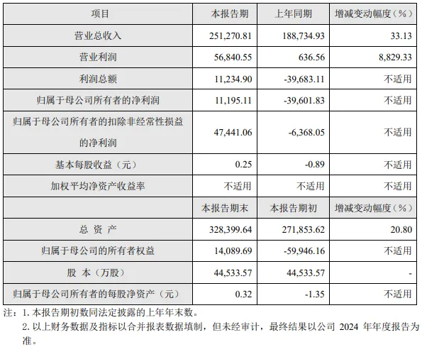 报告期内,实现营业收入25.127亿元,同比增长33.13%;营业利润 5.684亿元,同比增长8829.33%,归属于母公司所有者的净利润约1.12亿元,实现扭亏为盈,这也是公司首次实现年度盈利。