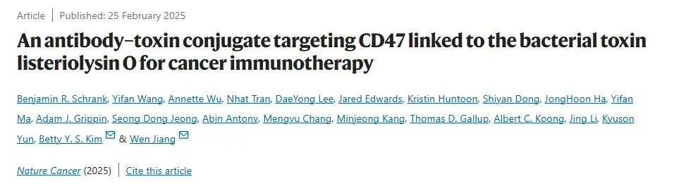 Wen Jiang, M.D., Ph.D., associate professor of Radiation Oncology(来源:MD Anderson癌症中心)许多实体肿瘤在其表面表达CD47蛋白,向身体的免疫系统发出 “别吃我”的信号,以逃避免疫检测和攻击。在该研究中,ACT的抗体部分靶向CD47,递送一种细菌毒素(listeriolysin O, LLO)。